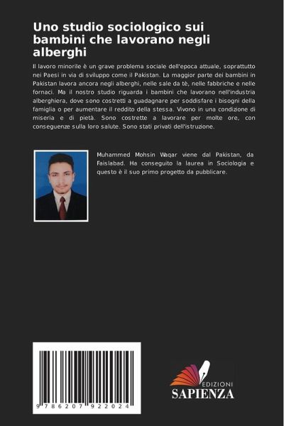 Il lavoro minorile è un grave problema sociale dell'epoca attuale, soprattutto nei Paesi in via di sviluppo come il Pakistan. La maggior parte dei bambini in Pakistan lavora ancora negli alberghi, nelle sale da tè, nelle fabbriche e nelle fornaci. Ma il nostro studio riguarda i bambini che lavorano nell'industria alberghiera, dove sono costretti a guadagnare per soddisfare i bisogni della famiglia o per aumentare il reddito della stessa. Vivono in una condizione di miseria e di pietà. Sono costrette a lavorare per molte ore, con conseguenze sulla loro salute. Sono stati privati dell'istruzione.
