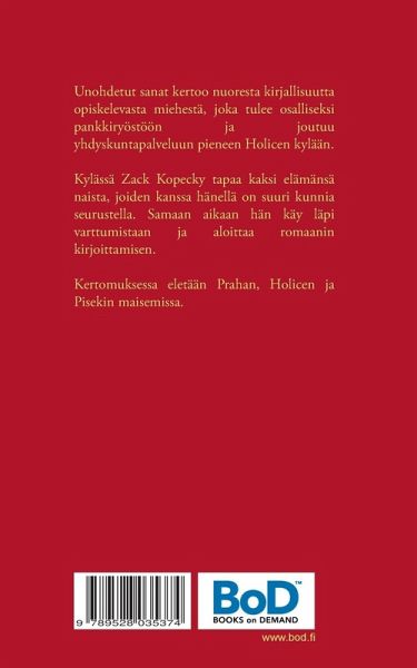Unohdetut sanat kertoo nuoresta kirjallisuutta opiskelevasta miehestä, joka tulee osalliseksi pankkiryöstöön ja joutuu yhdyskuntapalveluun pieneen Holicen kylään. Kylässä Zack Kopecky tapaa kaksi elämänsä naista, joiden kanssa hänellä on suuri kunnia seurustella. Samaan aikaan hän käy läpi varttumistaan ja aloittaa romaanin kirjoittamisen. Kertomuksessa eletään Prahan, Holicen ja Pisekin maisemissa.