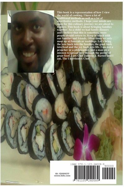 This book is a representation of how I view the world of cooking. I hope your minds are open for this culinary journey we are about to explore. This book is about bringing families together. As a child we had family dinners and I believe that this is something more people should return to. Keep in touch with our families and friends. Often times we only meet up at funerals or weddings. Let's bring the love back into the families, the good back into food and the joy back into life. I am a just a man on a mission to spread love through the power of great food. CHEF JAIMEUS BARNES