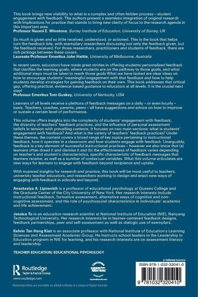 This volume offers insights into the complexity of students' engagement with feedback, the diversity of teachers' feedback practices, and the influence of personal assessment beliefs in tension with prevailing contexts. It focuses on two main sections: what is students' engagement with feedback? And what is the variety of teachers' feedback practices? Under these themes, the content covers a broad range of key topics pertaining to instructional feedback, how it operates in a classroom and how students engage with feedback. Unarguably, feedback is a key element of successful instructional practices - however we also know that (a) learners often dread it and dismiss it and (b) the effectiveness of feedback varies depending on teacher's and student's characteristics, specific characteristic of feedback messages that learners receive, as well as a number of contextual variables. What this volume articulates are new ways for learners to engage with feedback beyond recipience and uptake.