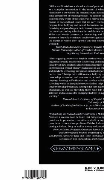 «'Unpacking the Loaded Teacher Matrix' by sj Miller and Linda Norris is a creative tour de force that brings to light serious problems in preservice education and offers important approaches to redress those problems. This book clears a path for uniting mind and body as well as theory and practice...» (Peter McLaren, Professor, Graduate School of Education and Information Studies, University of California, Los Angeles, Author of 'Rage and Hope: Interviews with Peter McLaren on War, Imperialism, and Critical Pedagogy')