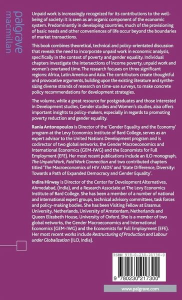 Acknowledgements Notes on Contributors List of Abbreviations and Acronyms Preface Unpaid Work and the Economy Understanding Poverty: Insights Emerging from the Time-Use of the Poor Gender Inequalities in Allocating Time to Paid and Unpaid Work: Evidence from Bolivia Unpaid Work, Poverty and Unemployment: A Gender Perspective from South Africa Unpaid HIV/AIDS Care, Gender and Poverty: Exploring the Links Public Investment and Unpaid Work in India: Selective Evidence from Time-Use Data Macroeconomics, Unpaid Work and Unemployment: Engendering Public Job Creation Lessons from the Buenos Aires Time Use Survey: A Methodological Assessment Issues in Time-Use Measurement and Valuation: Lessons from African Experience on Technical and Analytical Issues Removing the Cloak of Invisibility: Integrating Unpaid Household Services in National Economic Accounts-The Philippines Experience Time-Use Surveys in Developing Countries: An Assessment Index