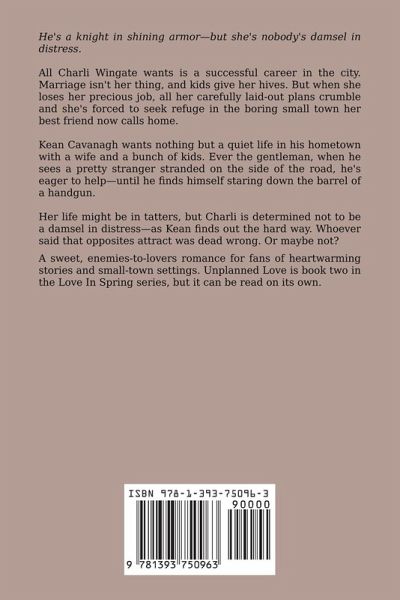 He's a knight in shining armor—but she's nobody's damsel in distress. All Charli Wingate wants is a successful career in the city. Marriage isn't her thing, and kids give her hives. But when she loses her precious job, all her carefully laid-out plans crumble and she's forced to seek refuge in the boring small town her best friend now calls home. Kean Cavanagh wants nothing but a quiet life in his hometown with a wife and a bunch of kids. Ever the gentleman, when he sees a pretty stranger stranded on the side of the road, he's eager to help—until he finds himself staring down the barrel of a handgun. Her life might be in tatters, but Charli is determined not to be a damsel in distress—as Kean finds out the hard way. Whoever said that opposites attract was dead wrong. Or maybe not? A sweet, enemies-to-lovers romance for fans of heartwarming stories and small-town settings. Unplanned Love is book two in the Love In Spring series, but it can be read on its own.