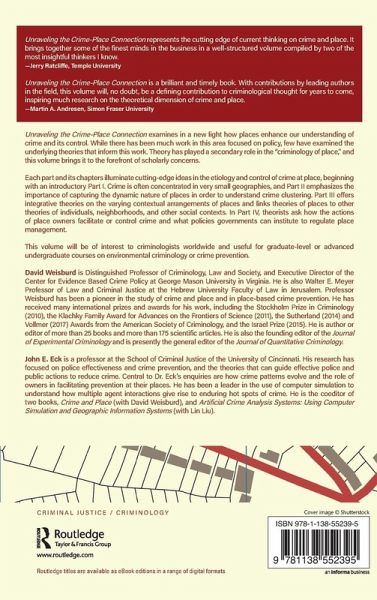 Unraveling the Crime-Place Connection examines how places enhance our understanding of crime and its control in a new light. Theory has played a secondary role in the "criminology of place," and this volume brings it to the forefront of scholarly concerns. This volume will be of interest to criminologists worldwide, and has potential for some adoptions in graduate-level or advanced undergraduate courses on environmental criminology or crime prevention.