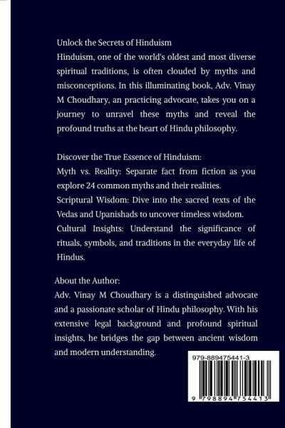 "Unraveling the Riddles in Hinduism: Decoding Dr. B.R. Ambedkar's Riddles in Hinduism" by Adv. Vinay M Choudhary is a groundbreaking exploration into the depths of Hindu philosophy, aimed at dispelling long-held misconceptions and presenting the profound wisdom of this ancient tradition in a clear and accessible manner Hinduism, one of the world's oldest spiritual traditions, is often misunderstood and misrepresented. Myths and misconceptions abound, obscuring the true essence of its teachings and practices. This book seeks to address these issues head-on by systematically debunking 24 of the most common myths associated with Hinduism. Each chapter is dedicated to a specific myth, providing a thorough examination of its origins and offering well-researched, insightful counterarguments rooted in Hindu scriptures & historical evidence Adv. Vinay M Choudhary, a distinguished advocate, brings a unique blend of legal acumen and spiritual insight to this work. His passion for Hindu philosophy and his commitment to truth shine through in every page, making this book not only informative but also deeply engaging & inspiring This book is an essential read for anyone interested in understanding the true essence of Hinduism. Whether you are a scholar, a practitioner, or simply curious about this ancient tradition, this book promises to enrich your knowledge and appreciation of Hindu philosophy, dispelling myths and revealing the timeless truths that have guided countless generations