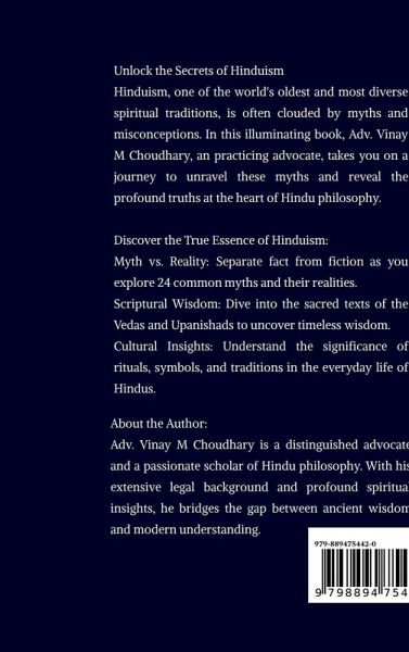 "Unraveling the Riddles in Hinduism: Decoding Dr. B.R. Ambedkar's Riddles in Hinduism" by Adv. Vinay M Choudhary is a groundbreaking exploration into the depths of Hindu philosophy, aimed at dispelling long-held misconceptions and presenting the profound wisdom of this ancient tradition in a clear and accessible manner Hinduism, one of the world's oldest spiritual traditions, is often misunderstood and misrepresented. Myths and misconceptions abound, obscuring the true essence of its teachings and practices. This book seeks to address these issues head-on by systematically debunking 24 of the most common myths associated with Hinduism. Each chapter is dedicated to a specific myth, providing a thorough examination of its origins and offering well-researched, insightful counterarguments rooted in Hindu scriptures & historical evidence Adv. Vinay M Choudhary, a distinguished advocate, brings a unique blend of legal acumen and spiritual insight to this work. His passion for Hindu philosophy and his commitment to truth shine through in every page, making this book not only informative but also deeply engaging & inspiring This book is an essential read for anyone interested in understanding the true essence of Hinduism. Whether you are a scholar, a practitioner, or simply curious about this ancient tradition, this book promises to enrich your knowledge and appreciation of Hindu philosophy, dispelling myths and revealing the timeless truths that have guided countless generations
