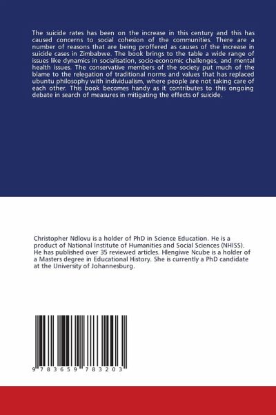 The suicide rates has been on the increase in this century and this has caused concerns to social cohesion of the communities. There are a number of reasons that are being proffered as causes of the increase in suicide cases in Zimbabwe. The book brings to the table a wide range of issues like dynamics in socialisation, socio-economic challenges, and mental health issues. The conservative members of the society put much of the blame to the relegation of traditional norms and values that has replaced ubuntu philosophy with individualism, where people are not taking care of each other. This book becomes handy as it contributes to this ongoing debate in search of measures in mitigating the effects of suicide.