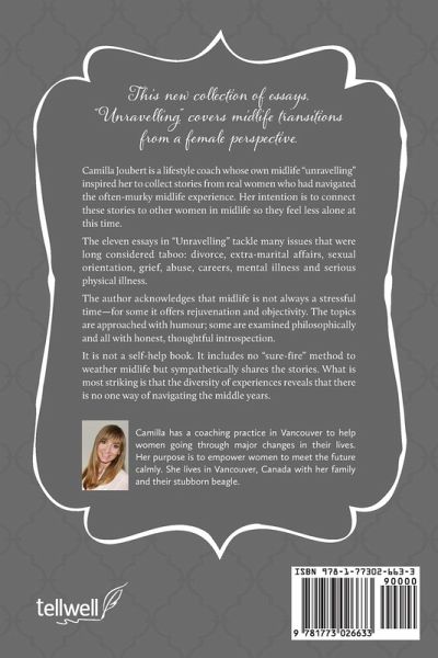 This new collection of essays, "Unravelling," covers midlife transitions from the female perspective. Camilla Joubert is a lifestyle coach whose own midlife "unravelling" inspired her to collect stories from real women who had navigated the often-murky midlife experience. Her intention is to connect these stories to other women in midlife so they feel less alone at this time. The eleven essays in "Unravelling" tackle many issues that were long considered taboo: divorce, extra-marital affairs, sexual orientation, grief, abuse, careers, mental illness and serious physical illness. The author acknowledges that midlife is not always a stressful time—for some it offers rejuvenation and objectivity. The topics are approached with humour; some are examined philosophically and all with honest, thoughtful introspection. It is not a self-help book. It includes no "sure-fire" method to weather midlife but sympathetically shares the stories. What is most striking is that the diversity of experiences reveals that there is no one way of navigating the middle years. Camilla has a coaching practice in Vancouver to help women going through major changes in their lives. Her purpose is to empower women to meet the future calmly. She lives in Vancouver, Canada with her family and their stubborn beagle.