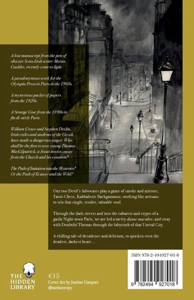 A lost manuscript from the pen of obscure Scots-Irish writer Martin Caulder, recently come to light. A pseudonymous work for the Olympia Press in Paris in the 1960s. A mysterious packet of papers from the 1920s. A Strange Case from the 1890s in fin de siècle Paris. William Crowe and Stephen Devlin, Irish exiles and students of the Occult, have made a dangerous wager: who shall be the first to woo young Thomas MacGilpatrick, a Jesuit novice, away from the Church and his vocation? The Path of Initiation into the Mysteries? Or the Path of Ecstasy and the Wild? Our two Devil's Advocates play a game of smoke and mirrors, Tarot-Chess, Kabbalistic Backgammon, working like artisans to win that single, tender, valuable soul. Through the dark streets and into the cabarets and crypts of a gaslit Night-town Paris, we are led a merry danse macabre, and stray with Doubtful Thomas through the labyrinth of that Unreal City. A chilling tale of decadence and delirium, to quicken even the deadest, darkest heart ...