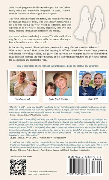 In "(un)remarkable: How Cancer and Depression Intertwined our Stories of Grief and Hope", Tennille Corbett and her daughter, Lydia, invite readers into their world, sharing the powerful and heart-wrenching journey of the tumultuous year of 2023. For each of them, it challenged their beliefs, rattled their sense of control, and forced them to confront life's uncertainties head-on. This unique dual-narrative unfolds as Tennille and Lydia reflect on the same events, documenting their differing experiences each month, and providing an intimate glimpse into their struggles and triumphs. As Tennille, a middle-class working professional, battles stage four endometrial cancer, Lydia, on the brink of adulthood, copes with the complexities of high school, a recent breakup, and the gradual deterioration of her mental health. The Corbett family weathers the storm, finding solace in unexpected places, particularly their family dog, Remy. As Tennille and Lydia navigate their respective struggles, the memoir becomes a testament to their resilience, love, and unwavering bond. The duo work together to unravel the silos they inadvertently created, sharing their story to inspire others facing similar challenges. Tennille's desire to showcase the possibility of a new life alongside a terminal cancer diagnosis and Lydia's quest to navigate the next phase of her teenage life creates a narrative that resonates with readers on a deeply emotional level. "(un)remarkable" is not just a memoir; it's a beacon of hope, a celebration of family, and a testament to the human spirit's ability to triumph over adversity. Tennille and Lydia's collaboration offers readers a poignant and inspiring exploration of the transformative power of love, resilience, and the unbreakable ties that bind us. This gripping memoir leaves the reader eagerly anticipating the next chapter in the Corbett family's journey beyond 2023.