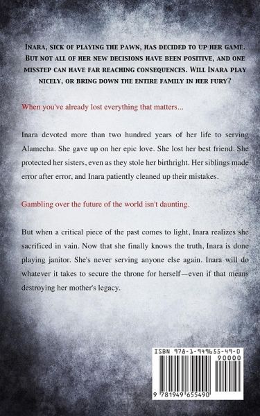 Inara, sick of playing the pawn, has decided to up her game. But not all of her new decisions have been positive, and one misstep can have far reaching consequences. Will Inara play nicely, or bring down the entire family in her fury? When you've already lost everything that matters... Inara devoted more than two hundred years of her life to serving Alamecha. She gave up on her epic love. She lost her best friend. She protected her sisters, even as they stole her birthright. Her siblings made error after error, and Inara patiently cleaned up their mistakes. Gambling over the future of the world isn't daunting. But when a critical piece of the past comes to light, Inara realizes she sacrificed in vain. Now that she finally knows the truth, Inara is done playing janitor. She's never serving anyone else again. Inara will do whatever it takes to secure the throne for herself--even if that means destroying her mother's legacy.