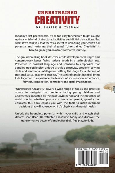 Unrestrained Creativity: How Sandlot Baseball Can Unleash Creativity In The Tech Age is a compelling book that sheds light on the declining significance of unstructured play and its impact on children's emotional and social growth. Dr. Shafer H. Zysman's personal experiences with sandlot baseball and his deep understanding of psychological theories come together to form a thought-provoking narrative. By advocating for the revival of unstructured play, Dr. Zysman reminds us pf the critical role it plays in nurturing creativity, self-esteem and the development of individual identities in children. The book also covers some of the most salient issues facing children in contemporary times: Social Medial, Artificial Intelligence, Alcohol/Drug Abuse, Obesity, mental health and social isolation. Included are interviews and comments from professional baseball players regarding their views of the development of a child athletes. It a must read for all!!