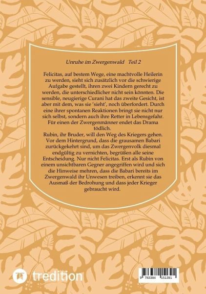 Felicitas, auf bestem Wege, eine machtvolle Heilerin und Botin des Zwergenvolks zu werden, sieht sich zusätzlich vor die schwierige Aufgabe gestellt, ihren zwei Kindern gerecht zu werden, die unterschiedlicher nicht sein könnten. Die sensible, neugierige Curani hat das 'zweite' Gesicht, kann aber das, was sie sieht, noch nicht richtig einordnen. Durch eine ihrer spontanen Reaktionen bringt sie nicht nur sich selbst in Lebensgefahr, sondern auch alle Katzen und die Zwergenmänner. Für einen von ihnen endet das Drama tödlich.Rubin, ihr Bruder, wünscht sich nichts sehnlicher, als den Weg des Kriegers zu gehen. Vor dem Hintergrund, dass die Babari, uralte Feinde der Zwerge, zurückgekehrt sind, um diese endgültig zu vernichten, wird seine Entscheidung von allen gutgeheißen. Nur nicht von Felicitas. Erst als Rubin durch einen unsichtbaren Gegner angegriffen und verletzt wird und sich zusätzlich die Hinweise mehren, dass die Babari bereits im Zwergenwald angekommen sind, erkennt sie das Ausmaß der Bedrohung und dass jeder Krieger gebraucht wird.