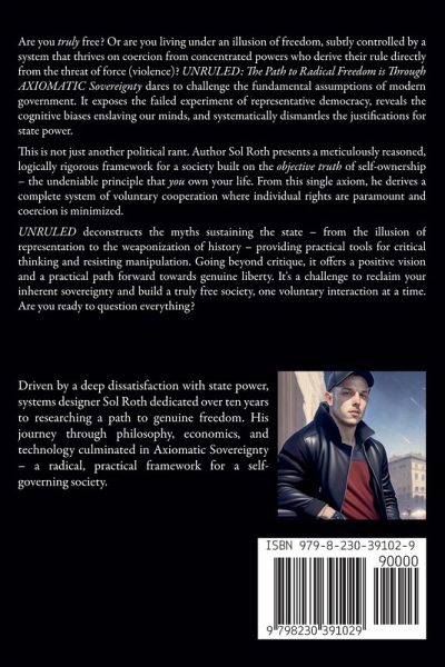 Are you truly free? Or are you living under an illusion of freedom, subtly controlled by a system that thrives on coercion from concentrated powers who derive their rule directly from the threat of force (violence)? UNRULED: The Path to Radical Freedom is through AXIOMATIC Sovereignty dares to challenge the fundamental assumptions of modern government, exposing the failed experiment of representative democracy, the cognitive biases in the mind of the enslaved, and dismantling the justifications for state power. This is not just another political rant. It's a meticulously reasoned, logically rigorous framework for a society built on the objective truth of self-ownership - the undeniable principle that you own your life, your body, and your justly acquired property. From this single axiom, author Sol Roth derives a complete system of voluntary cooperation, where individual rights are paramount and coercion is minimized to the greatest extent possible. Axiomatic Sovereignty deconstructs the myths that sustain the state: the illusion of representation, the deliberate obfuscation of government actions, the "should" tyranny of imposed morality, and the weaponization of history. It explores the psychological biases that make us susceptible to statist thinking and provides practical tools for cultivating critical thinking and resisting manipulation. But this book goes beyond critique. It offers a positive vision and a practical path forward. It introduces LogiState, a potential implementation of Axiomatic Sovereignty principles, leveraging technology to facilitate direct democracy, radical transparency, and a non-coercive approach to providing essential services. UNRULED is a call to action. It's a challenge to reclaim your inherent sovereignty, to reject illegitimate authority, and to join in building a truly free society, one voluntary interaction at a time. Are you ready to question everything? Are you ready to embrace radical freedom?