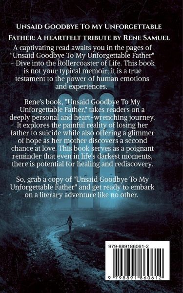 Prepare to be moved by the touching tale of a daughter's boundless love for her father and the unspoken farewell she never had the chance to give. "Unsaid Goodbye To My Unforgettable Father" written by Rene Samuel is a literary masterpiece that will leave an indelible mark on your heart. Brace yourself for an emotional rollercoaster as Rene takes you on a deeply personal and heart-wrenching journey, exploring the painful reality of losing her father to suicide. But amidst the sorrow, there is a glimmer of hope as her mother finds solace in a newfound love. This book serves as a powerful reminder that even in life's darkest moments, there is always room for healing and rediscovery. Don't miss out on this profound and inspiring read that will resonate with readers from all walks of life.