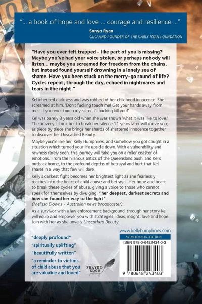 Highly praised Speaker and Author of Unscathed Beauty, Kelly Humphries' darkest fight becomes her brightest light as she fearlessly and bravely reaches into the heart of child abuse and betrayal. Kelly takes you on a roller coaster of emotions to ultimately inspire, equip and empower you with strategies, ideas, insight, hope and love.