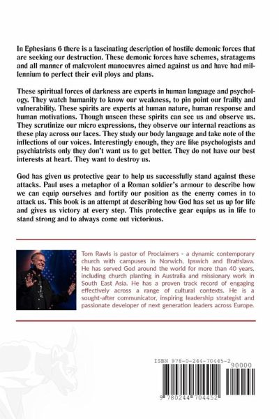 Unseen, by the widely acclaimed pastor and author Tom Rawls, takes a fresh look at the spirit world and how we can protect ourselves from the devil's schemes within our modern world. Through unpicking Ephesians 6, Unseen will help you learn how we navigate this invisible world and how we fight what we cannot see. Unseen explains how to we win the battles against these spirit beings so set on our destruction and how we face the challenges of a spirit world which is imperceptible to our five senses. Unseen explores how God has provided protective gear which allows us to successfully defend the attacks of the devil and spirit world. This book explores how God sets us up for life, and how He gives us victory at every step. Unseen is written to be accessible to everyone- so why not purchase Unseen today, and learn how God has equipped you for victory against the Devils schemes.