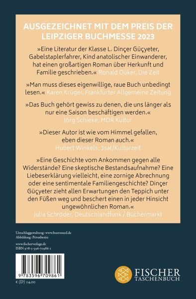 Für die Verleihung des Preises der Leipziger Buchmesse drückt Rezensent Paul Jandl dem nominierten Dinçer Güçyeter und seinem ersten Roman die Daumen: Güçyeter habe, selbst Sohn türkischer Gastarbeiter, die Geschichte migrantischer Utopien und Hoffnungen geschrieben, die allzu oft niedergeschmettert wurden. Eine Geschichte, erklärt Jandl, die viel mit dem Leben des Autors gemeinsam hat, die aufzeigt, wie toxische Männlichkeit und das Schweigen der überarbeiteten, sich aufopfernden Mutter ineinanderwirken und verhindern, dass die neue Heimat Deutschland zum erhofften Paradies wird. Den Kritiker beeindruckt dabei vor allem das Spiel mit Sprache: Sprachlosigkeit, Sprachfindung und Sprachwerdung finden in der Figur des Protagonisten zusammen, der als einziger in der Familie gut Deutsch spricht und deswegen bei allen Terminen "wie eine Aldi-Tüte mitgeschleppt" wird. Der Lyriker Güçyeter hat ein außergewöhnliches Buch geschrieben, das Rebellion und Märchen zugleich ist, schließt Jandl.