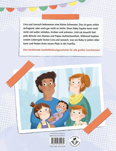 Lina und Janosch bekommen eine kleine Schwester. Das ist ganz schön aufregend, aber auch gar nicht so leicht. Denn Baby Sophie kann noch nicht viel außer schlafen, trinken und schreien. Und sie braucht fast jede Minute von Mamas und Papas Aufmerksamkeit. Während Sophies erstem Lebensjahr lernen Lina und Janosch, was ein Baby in jedem Alter kann und finden ihren neuen Platz in der Familie.