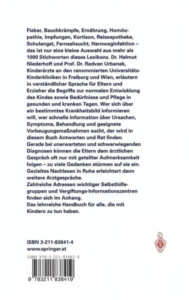 "... Dieses verständlich geschriebene Lexikon gibt Rat in Problem- und Krankheitsfragen - von A wie Abstillen bis Z wie Zufüttern. Es informiert über Symptome und Therapien und hilft Eltern, ihr Gespräch beim Kinderarzt vor- bzw. nachzubereiten ..." Rheinische Post 3/2004 "... ein griffiges Gesundheitsbuch ... Die beiden Mediziner schaffen es spielend, verständlich zu erklären ... Dass Niederhoff und Urbanek praktische Erfahrungen haben, ist den sachlichen Abschnitten wohltuend anzumerken ..." Badische Zeitung 9/2003