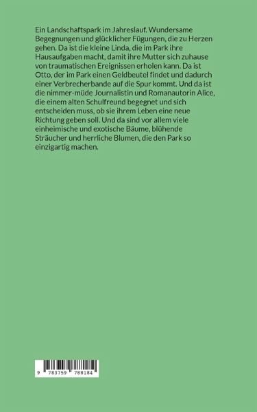Ein Landschaftspark im Jahreslauf. Wundersame Begegnungen und glücklicher Fügungen, die zu Herzen gehen. Da ist die kleine Linda, die im Park ihre Hausaufgaben macht, damit ihre Mutter sich zuhause von traumatischen Ereignissen erholen kann. Da ist Otto, der im Park einen Geldbeutel findet und dadurch einer Verbrecherbande auf die Spur kommt. Und da ist die nimmermüde Journalistin und Romanautorin Alice, die einem alten Schulfreund begegnet und sich entscheiden muss, ob sie ihrem Leben eine neue Richtung geben soll. Und da sind vor allem viele einheimische und exotische Bäume, blühende Sträucher und herrliche Blumen, die den Park so einzigartig machen.…mehr