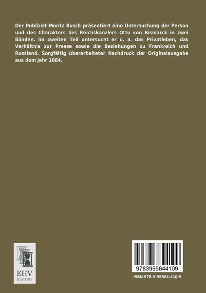 Der Publizist Moritz Busch präsentiert eine Untersuchung der Person und des Charakters des Reichskanzlers Otto von Bismarck in zwei Bänden. Im zweiten Teil untersucht er u. a. das Privatleben, das Verhältnis zur Presse sowie die Beziehungen zu Frankreich und Russland.