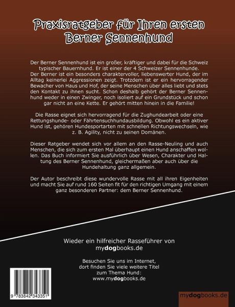 Der Berner Sennenhund ist ein großer, kräftiger und dabei für die Schweiz typischer Bauernhund. Er ist einer der 4 Schweizer Sennenhunde.Der Berner ist ein besonders charaktervoller, liebenswerter Hund, der im Alltag keinerlei Aggressionen zeigt. Trotzdem ist er ein hervorragender Bewacher von Haus und Hof, der seine Menschen über alles liebt und stets den Kontakt zu ihnen sucht. Schon deshalb gehört der Berner Sennenhund weder in einen Zwinger, noch isoliert auf ein Grundstück und schon gar nicht an eine Kette. Er gehört mitten hinein in die Familie!Die Rasse eignet sich hervorragend für die Zughundearbeit oder eine Rettungshunde- oder Fährtensuchhundausbildung. Obwohl es ein aktiver Hund ist, gehören Hundesportarten mit schnellen Richtungswechseln, wie z. B. Agility, nicht zu seinen Domänen. Dieser Ratgeber wendet sich vor allem an den Rasse-Neuling und auch Menschen, die sich zum ersten Mal überhaupt einen Hund anschaffen wollen. Das Buch informiert Sie ausführlich über Wesen,Charakter und Haltung des Berner Sennenhund, gleichermaßen aber auch über die Hundehaltung ganz allgemein.Der Autor beschreibt diese wundervolle Rasse mit all ihren Eigenheiten und macht Sie auf rund 160 Seiten fit für den richtigen Umgang mit einem ganz besonderen Partner: dem Berner Sennenhund.