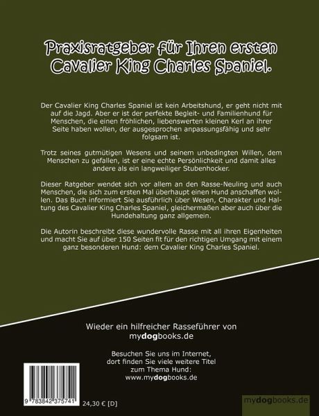 Der Cavalier King Charles Spaniel ist kein Arbeitshund, er geht nicht mit auf die Jagd. Aber er ist der perfekte Begleit- und Familienhund für Menschen, die einen fröhlichen, liebenswerten kleinen Kerl an ihrer Seite haben wollen, der ausgesprochen anpassungsfähig und sehr folgsam ist.Trotz seines gutmütigen Wesens und seinem unbedingten Willen, dem Menschen zu gefallen, ist er eine echte Persönlichkeit und damit alles andere als ein langweiliger Stubenhocker.Dieser Ratgeber wendet sich vor allem an den Rasse-Neuling und auch Menschen, die sich zum ersten Mal überhaupt einen Hund anschaffen wollen. Das Buch informiert Sie ausführlich über Wesen, Charakter und Haltung des Cavalier King Charles Spaniel, gleichermaßen aber auch über die Hundehaltung ganz allgemein.Die Autorin beschreibt diese wundervolle Rasse mit all ihren Eigenheiten und macht Sie auf über 150 Seiten fit für den richtigen Umgang mit einem ganz besonderen Hund: dem Cavalier King Charles Spaniel.