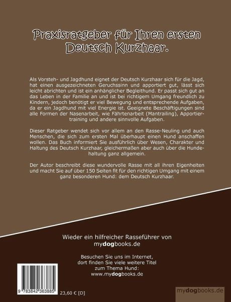 Als Vorsteh- und Jagdhund eignet der Deutsch Kurzhaar sich für die Jagd, hat einen ausgezeichneten Geruchssinn und apportiert gut, lässt sich leicht abrichten und ist ein anhänglicher Begleithund. Er passt sich gut an das Leben in der Familie an und ist bei richtigem Umgang freundlich zu Kindern, jedoch benötigt er viel Bewegung und entsprechende Aufgaben, da er ein Jagdhund mit viel Energie ist. Geeignete Beschäftigungen sind alle Formen der Nasenarbeit, wie Fährtenarbeit (Mantrailing), Apportiertraining und andere sinnvolle Aufgaben.Dieser Ratgeber wendet sich vor allem an den Rasse-Neuling und auch Menschen, die sich zum ersten Mal überhaupt einen Hund anschaffen wollen. Das Buch informiert Sie ausführlich über Wesen, Charakter und Haltung des Deutsch Kurzhaar, gleichermaßen aber auch über die Hundehaltung ganz allgemein.Der Autor beschreibt diese wundervolle Rasse mit all ihren Eigenheiten und macht Sie auf über 150 Seiten fit für den richtigen Umgang mit einem ganz besonderen Hund: dem Deutsch Kurzhaar.