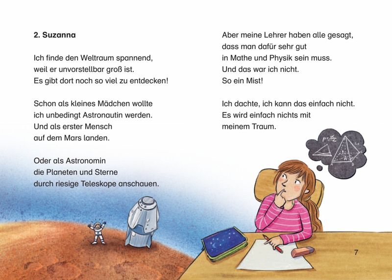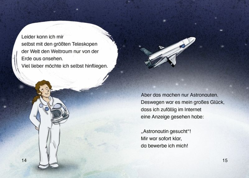 Flieg mit Insa und Suzanna zu den Sternen! Elf deutsche Männer waren bisher im Weltall. Jetzt ist endlich eine Frau an der Reihe! Dank der Initiative "Die Astronautin" bereiten sich erstmals zwei deutsche Frauen auf eine Forschungsmission zur ISS vor: Dr. Insa Thiele-Eich und Dr. Suzanna Randall lassen die Kinder am größten Abenteuer ihres Lebens teilhaben, erzählen von ihrem spannenden Training und stürzen sich mit den Lesern in aufregende Parabelflüge. Als Vorbilder wecken sie dabei speziell bei Mädchen die Begeisterung für Naturwissenschaft und Technik. Und die Reise in den Weltraum geht weiter, wenn die Astronautinnen in Band 2 von ihrem Flug mit der ISS berichten. Lesenlernen wie eine Rakete mit den Lesestartern von Oetinger. Mit starken Charakteren und populären Themen werden Kinder im Alter von fünf bis zehn Jahren für das Lesen begeistert - dazu gibt es viele Bilder, tolle Spiele und Leserätsel.