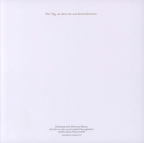 Das zauberhaft gestaltete Hochzeitsalbum mit passenden Zitaten für eines der wichtigsten Ereignisse im Leben. Vom ersten Kennenlernen, dem Beginn der Liebe, dem Entschluss zu heiraten bis zur Hochzeit selbst, den Gästen, den Geschenken, der Hochzeitsreise und den Tagen danach kann alles festgehalten werden, was dem Brautpaar wichtig ist. Die mit Blüten geschmückten Seiten bieten den attraktiven Rahmen und genügend Platz für Kurztexte, Fotos, Hochzeitsanzeige, Menükarten, Gästelisten und noch viel mehr. Für "Andenken" an die erste gemeinsame Zeit gibt es eine Falttasche auf dem hinteren Buchdeckel. Und damit nichts verloren geht, lässt sich das ungewöhnlich schöne Album mit einem hübschen Band zubinden. Angemessener können Erinnerungen an den einzigartigen Tag nicht aufbewahrt werden.