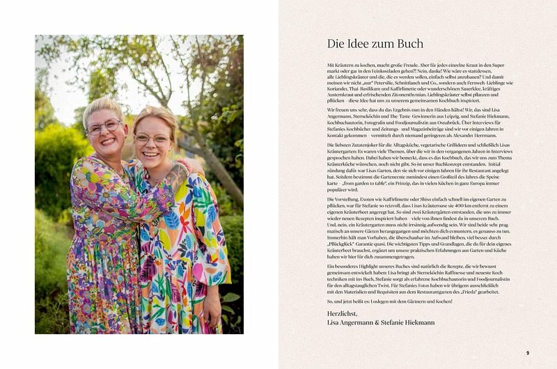 Kochbuchautorin und Foodfotografin Stefanie Hiekmann und Sterneköchin Lisa Angermann haben sich beim Büchermachen kennengelernt. Ihre gemeinsame Leidenschaft: Gutes Essen, das Spaß macht, das überrascht, das für Glücksmomente im Alltag sorgt. Ihr erstes gemeinsames Buch zeigt, wie wir der Alltagsküche mit frischen Kräutern neuen Schwung verleihen. Lisas "from garden to table"-Prinzip hat dem erfolgreichen Restaurant FRIEDA in Leipzig schon zu einem grünen Stern verholfen. Das Kochbuch zur Kräuterküche bietet neben Einblicken in diese Philosophie viele abwechslungsreiche Rezepte: Mit Lieblingskräutern, lokalen Exoten etlichen Geheimtipps ein Musthave für alle Gartenfreunde und kulinarischen Entdecker!