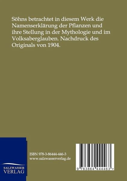 Söhns betrachtet in diesem Werk die Namenserklärung der Pfanzen und ihre Stellung in der Mythologie und im Volksaberglauben. Nachdruck des Originals von 1904.