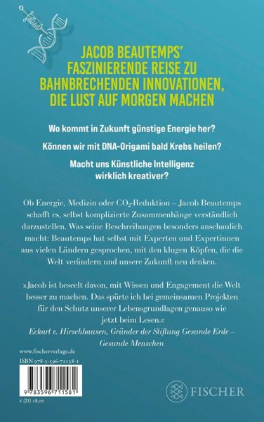 Der Science-Star und junge Wissenschaftler Jacob Beautemps nimmt uns mit auf eine packende Wissensexpedition zu bahnbrechenden Innovationen. Ob Energie, Medizin, KI oder Ernährung - er schafft es, selbst komplizierte Zusammenhänge verständlich darzustellen. Was seine Beschreibungen besonders anschaulich macht: Beautemps hat selbst mit den Forschenden aus vielen Ländern gesprochen, mit den klugen Köpfen, die die Welt verändern wollen. Dabei sind unter anderem Bill Gates, der Gründer von Microsoft, der Vizepräsident von Google oder der Chef der Bundesagentur für Sprunginnovationen. Sie und viele andere Männer und Frauen vermitteln uns auf exklusive Weise, was innovatives Denken antreibt und welchen Einsatz es braucht, um etwas ganz Neues in die Welt zu bringen - damit sie wirklich besser wird.