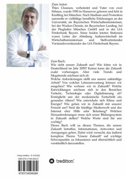 Dieses Buch will zu diesen Themen, die unsere Zukunft betreffen, Informationen, Antworten und Anregungen geben. Dabei wird versucht, das äußerst komplexe Thema "Unsere Zukunft" auf wichtige Schwerpunkte zu fokussieren und übersichtlich und verständlich darzustellen.