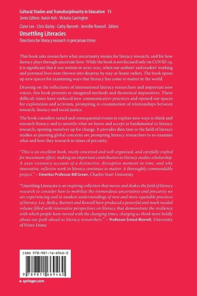 The book considers varied and consequential events to explore new ways to think and research literacy and to unsettle what we know and accept as fundamental to literacy research, opening ourselves up for change. It provides direction to the field of literacy studies as pressing global concerns are prompting literacy researchers to re-examine what and how they research in times of precarity.
