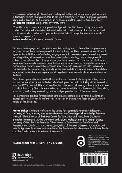 This collection engages with translation and interpreting from a diverse but complementary range of perspectives, in dialogue with the seminal work of Theo Hermans. It is important reading for translation scholars, researchers and advanced students on courses covering key trends and theories in translation studies.
