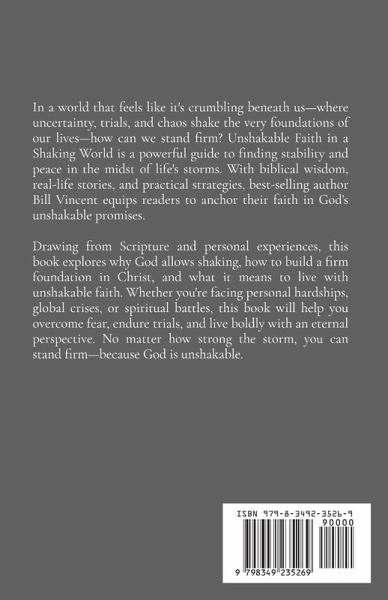 In a world that feels like it's crumbling beneath us-where uncertainty, trials, and chaos shake the very foundations of our lives-how can we stand firm? Unshakable Faith in a Shaking World is a powerful guide to finding stability and peace in the midst of life's storms. With biblical wisdom, real-life stories, and practical strategies, best-selling author Bill Vincent equips readers to anchor their faith in God's unshakable promises. Drawing from Scripture and personal experiences, this book explores why God allows shaking, how to build a firm foundation in Christ, and what it means to live with unshakable faith. Whether you're facing personal hardships, global crises, or spiritual battles, this book will help you overcome fear, endure trials, and live boldly with an eternal perspective. No matter how strong the storm, you can stand firm-because God is unshakable.
