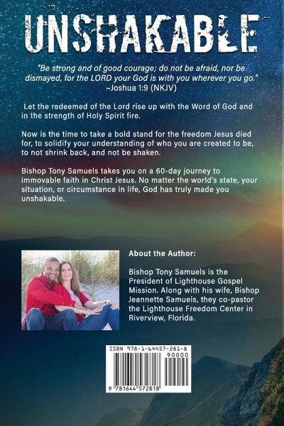 "Be strong and of good courage; do not be afraid, nor be dismayed, for the LORD your God is with you wherever you go." ~Joshua 1:9 (NKJV) Let the redeemed of the Lord rise up with the Word of God and in the strength of Holy Spirit fire. Now is the time to take a bold stand for the freedom Jesus died for, to solidify your understanding of who you are created to be, to not shrink back, and not be shaken. Bishop Tony Samuels takes you on a 60-day journey to immovable faith in Christ Jesus. No matter the world's state, your situation, or circumstance in life, God has truly made you unshakable. Let's get started!