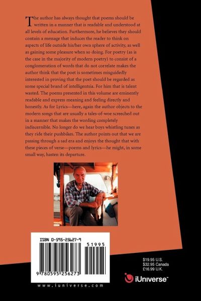 The author has always thought that poems should be written in a manner that is readable and understood at all levels of education. Furthermore, he believes they should contain a message that induces the reader to think on aspects of life outside his/her own sphere of activity, as well as gaining some pleasure when so doing. For poetry (as is the case in the majority of modern poetry) to consist of a conglomeration of words that do not correlate makes the author think that the poet is sometimes misguidedly interested in proving that the poet should be regarded as some special brand of intelligentsia. For him that is talent wasted. The poems presented in this volume are eminently readable and express meaning and feeling directly and honestly. As for Lyrics