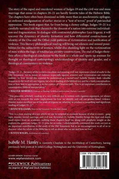 The story of the raped and murdered woman of Judges 19 and the civil war and mass marriage that ensue in chapters 20-21 are hardly favorite tales of the Hebrew Bible. The chapters have often been dismissed as little more than an anachronistic epilogue, an awkward amalgamation of earlier stories or a "text of terror," proof of patriarchal oppression. This book argues that, far from being a clumsy collage, Judges 19-21 is a carefully narrated tale that chronicles the descent of a nation into extreme individualism and fragmentation. In dialogue with continental philosopher Luce Irigaray, it will uncover the dynamics of identity formation and how differential constructions of identity of the One and the Other yield patterns of victimization and justification of violence. This literary-philosophical reading will bring out silences and missed possibilities for the subjectivity of women, whilst also shedding light on the victimization of men within the logic of totalitarian identity constructions. The end of Judges therefore offers a theological conclusion to the book as a whole and opens up avenues for thought on theological anthropology, understandings of identity and gender, and a theological commentary on violence.