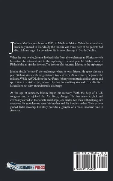 Johnny McCabe was born in 1935, in Machias, Maine. When he turned one, his family moved to Florida. By the time he was three, both of his parents had died. Johnny began his conscious life in an orphanage in South Carolina. When he was twelve, Johnny hitched rides from the orphanage to Florida to visit his sister. She returned him to the orphanage. The next year, he hitched rides to Philadelphia to visit his brother. The brother also returned Johnny to the orphanage. Johnny finally "escaped" the orphanage when he was fifteen. He spent almost a year hitching rides with long-distance truck drivers. At seventeen, he joined the military. While AWOL from the Air Force, Johnny committed a civilian crime and spent time in a civilian jail, followed by time in a military stockade. The Air Force kicked him out with an undesirable discharge. At the age of nineteen, Johnny began his recovery. With the help of a U.S. congressman, he rejoined the Air Force, changed his first name to Jack and eventually earned an Honorable Discharge. Jack credits two men with helping him overcome his troublesome start: his brother and his brother-in-law. Their actions guided Jack's recovery. His story provides a glimpse of a more innocent time in America.