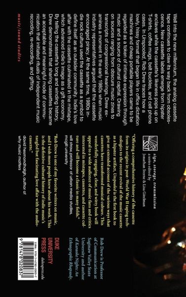 Well into the new millennium, the analog cassette tape continues to claw its way back from obsolescence. New cassette labels emerge from hipster enclaves while the cassette's likeness pops up on T-shirts, coffee mugs, belt buckles, and cell phone cases. In Unspooled, Rob Drew traces how a lowly, hissy format that began life in office dictation machines and cheap portable players came to be regarded as a token of intimate expression through music and a source of cultural capital. Drawing on sources ranging from obscure music zines to transcripts of Congressional hearings, Drew examines a moment in the early 1980s when music industry representatives argued that the cassette encouraged piracy. At the same time, 1980s indie rock culture used the cassette as a symbol to define itself as an outsider community. Indie's love affair with the cassette culminated in the mixtape, which advanced indie's image as a gift economy. By telling the cassette's long and winding history, Drew demonstrates that sharing cassettes became an acceptable and meaningful mode of communication that initiated rituals of independent music recording, re-recording, and gifting.