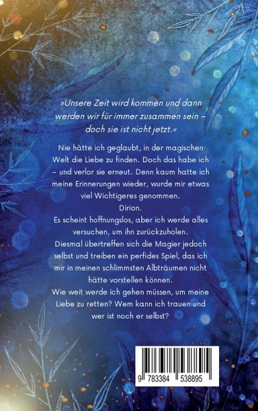 »Unsere Zeit wird kommen und dann werden wir für immer zusammen sein - doch sie ist nicht jetzt.«Nie hätte ich geglaubt, in der magischen Welt die Liebe zu finden. Doch das habe ich - und verlor sie erneut. Denn kaum hatte ich meine Erinnerungen wieder, wurde mir etwas viel Wichtigeres genommen.Dirion.Es scheint hoffnungslos, aber ich werde alles versuchen, um ihn zurückzuholen.Diesmal übertreffen sich die Magier jedoch selbst und treiben ein perfides Spiel, das ich mir in meinen schlimmsten Albträumen nicht hätte vorstellen können.Wie weit werde ich gehen müssen, um meine Liebe zu retten? Wem kann ich trauen und wer ist noch er selbst?