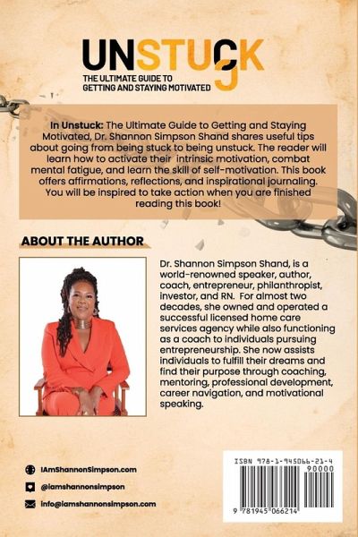 In Unstuck: The Ultimate Guide to Getting and Staying Motivated, Dr. Shannon Simpson Shand shares useful tips about going from being stuck to being unstuck. The reader will learn how to activate their intrinsic motivation, combat mental fatigue, and learn the skill of self-motivation. This book offers affirmations, reflections, and inspirational journaling. You will be inspired to take action when you are finished reading this book!
