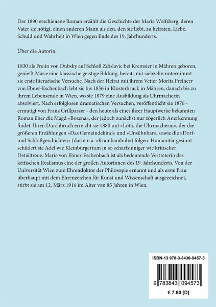 Der 1890 erschienene Roman erzählt die Geschichte der Maria Wolfsberg, deren Vater sie nötigt, einen anderen Mann als den, den sie liebt, zu heiraten. Liebe, Schuld und Wahrheit in Wien gegen Ende des 19. Jahrhunderts.