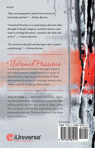 Untamed Passions is a daring and unrestrained marriage of poetry and misadventures, largely based on a series of disjointed life experiences. This collection of free-verse poems and sonnets unleashes and explores the author's complex thoughts, tumult, and tantrums evoked by abstract concepts. Poet Alain N'Dalla also honestly discloses his nostalgic ordeals with women and his fledgling relationships. Themes of love, betrayal, reflection, resilience, and death are addressed with bluntness and bravery. Explore and indulge in the author's untamed passions, once buried in the chilling shadows of his deepest contemplations.