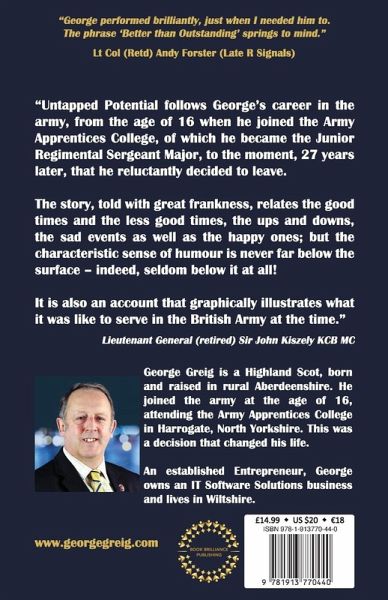 Follow George Greig as he joins the army at the age of 16, to the moment, 27 years later, that he reluctantly decided to leave. A memoir told with great frankness that will take you on the ups and downs of army life.