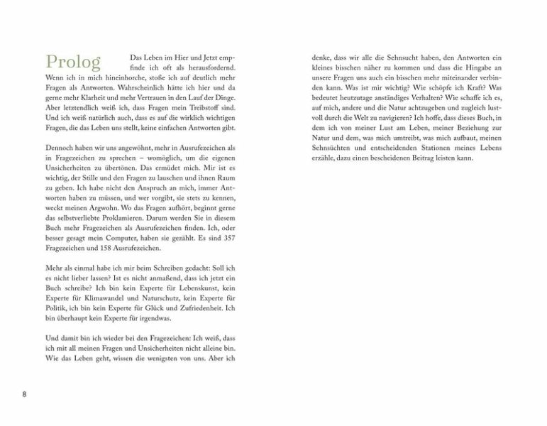 "Dies ist kein Ratgeber, sondern eine Auseinandersetzung mit mir und meiner Beziehung zur Natur. Es geht um meine Lust am Leben und meine Überforderung in anspruchsvollen Zeiten. Ich erzähle von dem, was mich umtreibt, was mich aufbaut, meinen Sehnsüchten. Ich erzähle von entscheidenden Stationen meines Lebens und den Fragen, die ich habe: Was ist mir wichtig? Wie schöpfe ich Kraft? Was bedeutet anständiges Verhalten im Hier und Jetzt? Wie versuche ich auf mich, andere und die Natur achtzugeben und zugleich lustvoll durch die Welt zu navigieren? Ichmöchte in diesem Buch das Leben feiern." Benno Fürmann