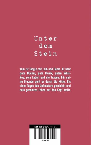 Tom ist Single mit Leib und Seele. Er liebt gute Bücher, gute Musik, guten Whiskey, sein Leben und die Frauen. Für seine Freunde geht er durch die Hölle. Bis eines Tages das Unfassbare geschieht und sein gesamtes Leben auf den Kopf stellt.Er dreht jeden einzelnen Stein um, die schreckliche Wahrheit herauszufinden.Eine Geschichte, die das Leben schreibt.Ein großartiges Buch über Freundschaften in all ihren Facetten, von Liebe bis zu Hass wird alles ausgekostet. Gesellschaftliche Themen, Spitzen in alle Richtungen, reichlich literarische Anspielungen führen zu einem Lesevergnügen erster Güte.Jörg Hilges Romandebüt besticht durch Stil, Wortwahl, Charme und Witz, trotz aller Widrigkeiten, die das Leben nunmal mit sich bringt.Es ist kein Liebesroman, kein Thriller, vor allem keine leichte Kost.Aber wer sich auf diesen Weg mitreisssen läßt, kann davon auch nicht loslassen.